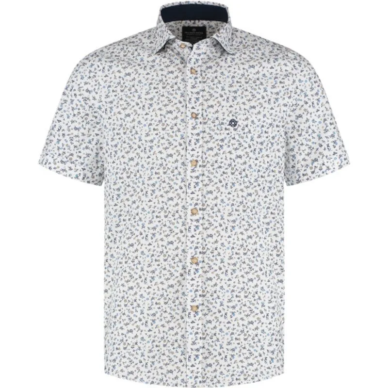 Zomer overhemd van Fellows United met korte mouwen en een subtiel gebloemd dessin. Regular fit Borstzakje 97% Katoen/ 3% Elasthan Kleurnummer: 151