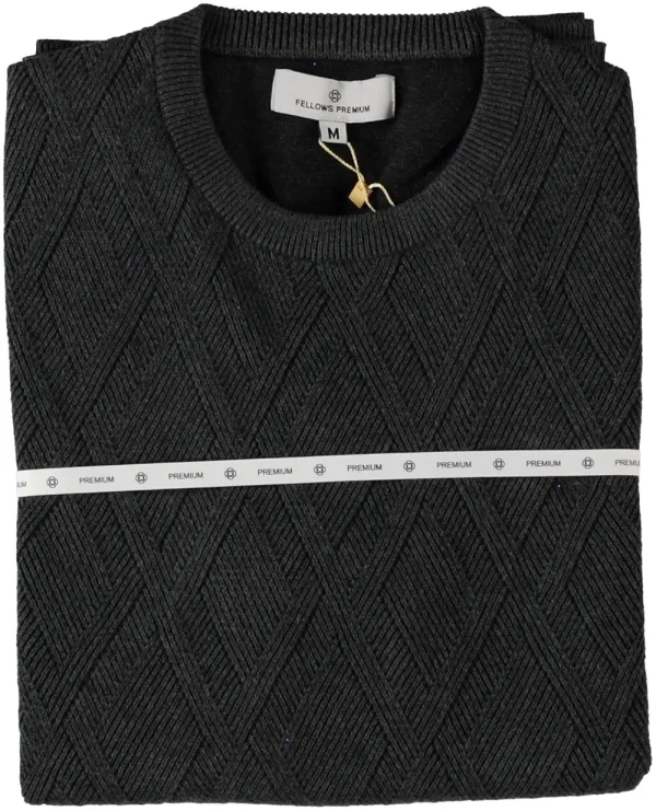 Fellows United Fellows United Pullover Premium Crew Neck Argyle Struct. Mid Grey XL Prijzen