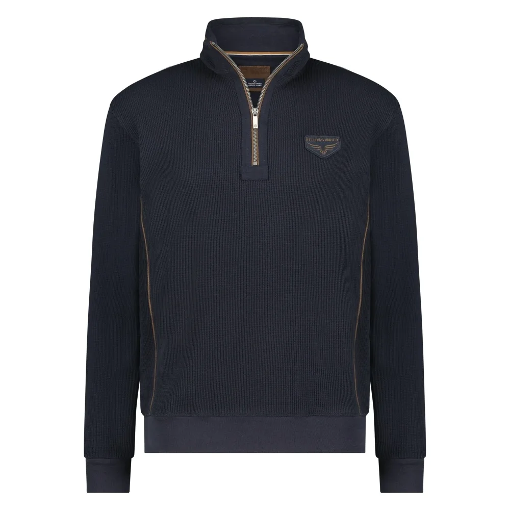 Fellows United Half Zip Pullover Waffle Mixed Fabric Navy M Prijzen
