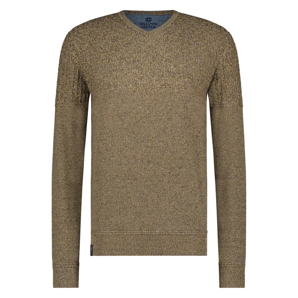 Fellows United Pullover V-Neck Structure Knit Oker 3XL Prijzen