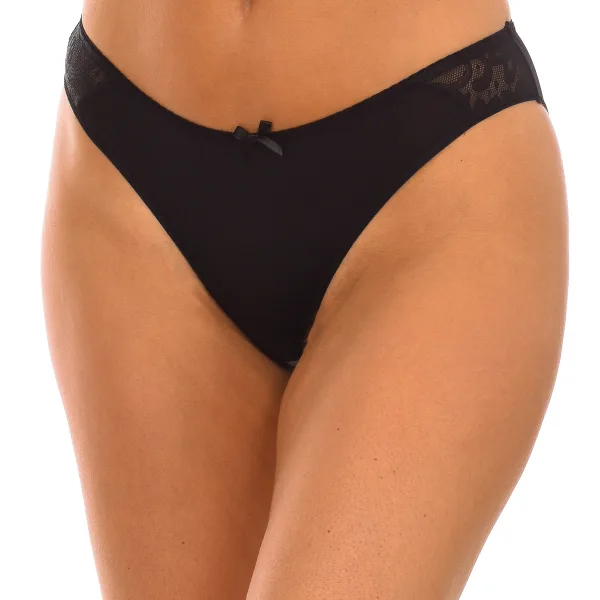 Feminine Brief van DIM. Kleur Zwart Slip met bloemenborduursel aan de zijkanten. Elastische en ademende stof. Naden in toon zichtbaar. Samenstelling: 88% polyamide, 12% elastaan Wassen op max. temperatuur 30°C Niet in de droger niet bleken Niet strijken Samenstelling: 88% polyamide, 12% elastaan Onderhoud: Wassen op maximaal 30°C Niet in de droger Niet bleken Niet strijken