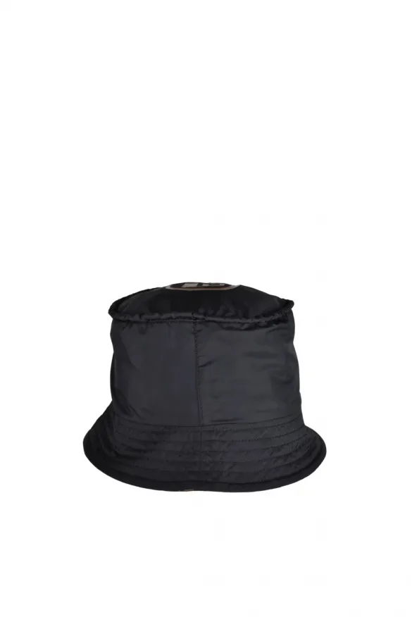 Zwarte omkeerbare bobbel met bruine Fendi-details.Bruin Fendi-logo bovenaan.Bruine trekkoorden.De binnenkant is voorzien van Fendi-logoprint in zwart en bruin.Gemaakt in Italië.