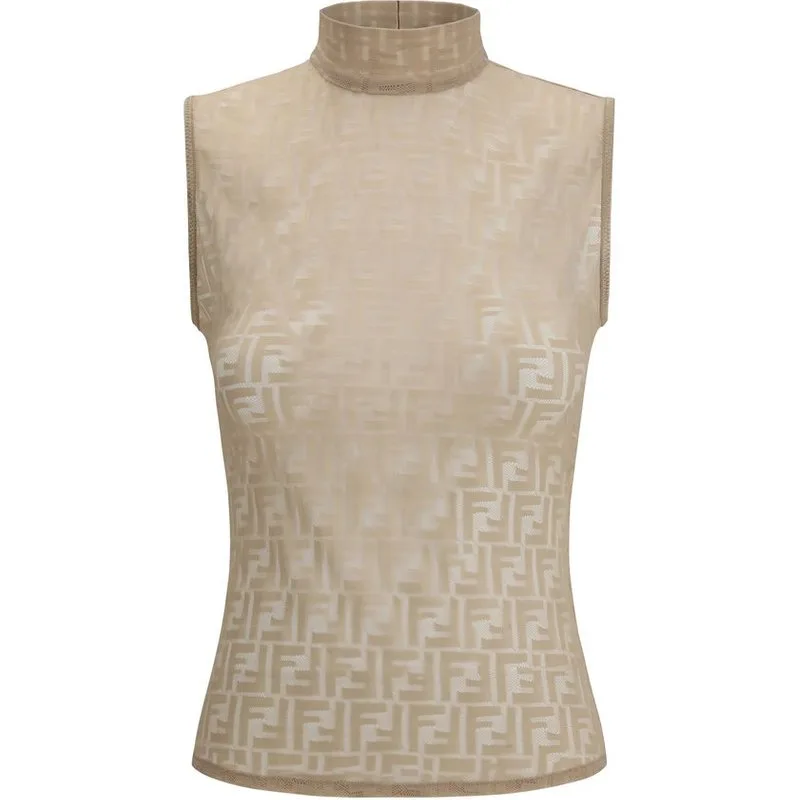De FF kanttop heeft een mouwloos ontwerp met een hoge kraag en een getailleerde silhouette. Gemaakt van zwarte jersey kant met een overal iconisch FF-motief, creëert het stuk een verfijnd doorzichtig effect. De ongevoerde constructie versterkt de lichtheid en gedurfdheid van het ontwerp, waardoor het een onderscheidend en statement-gevende kledingstuk is. Seizoen: SS26 Pasvorm: Slim Samenstelling: 92% polyamide 8% elastaan
