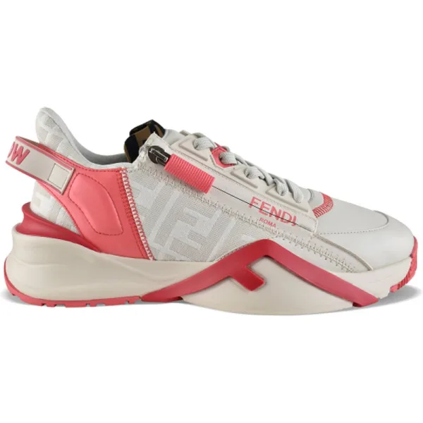 Sneakers Fendi Flow in wit leer.Canvas met FF monogrammotief op de schoen.Ritssluiting aan de zijkant met roze logo.Witte rubberen zool met diagonaal F-detail.Logodetails op de hiel.Elastische veters.Made in Italy.