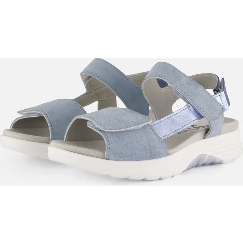 Deze Feyn sandalen voor dames in lichtblauw geven jouw zomerse look een frisse en moderne uitstraling. Het model is uitgevoerd in leer en heeft een G-leest, waardoor het mooi aansluit om de voet, terwijl de klittenbandsluitingen zorgen dat je de sandalen eenvoudig naar wens verstelt. De zachte textielen binnenzool en de lichte zool met een hakhoogte van circa 2 cm maken deze sandalen perfect om te combineren met een luchtige jurk, korte broek of jeans voor een casual en verzorgde outfit.
