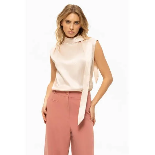 Met de lichtroze dames top met strikkraag Marli van Fifth House voeg je eenvoudig een elegante top toe aan je garderobe. De glanzende, effen stof geeft direct een verzorgde uitstraling, terwijl de mouwloze snit luchtig aanvoelt. Ideaal voor een lente bruiloft als gast, maar ook geschikt voor andere feestelijke momenten of een nette werkdag.Verfijnde details van top Marli Lichtroze kleur die zacht oogt en makkelijk combineert met neutrale en donkere tinten Strikkraag die je losjes kunt knopen voor een speels effect of strak voor een geklede look Mouwloos model, prettig op warmere dagen of onder een blazer Rechtvallende pasvorm die soepel langs het lichaam valt Glimmende stof voor een subtiele glans Effen design zonder print voor een rustige uitstraling Knoopsluiting aan de voorkant voor makkelijk aan- en uittrekken Geen zakken, zodat het silhouet strak en slank blijft Onderdeel van de boutique collectie, met een meer geklede uitstralingPerfect voor bruiloftsgast en andere gelegenhedenDeze top past goed bij zowel een nette pantalon als een rok. Voor een bruiloft combineer je Marli bijvoorbeeld met een midi rok en hakken, voor een kantoorlook met een blazer en een rechte broek. De lichte, soepele stof maakt de top comfortabel om de hele dag te dragen.Fifth House met oog voor vorm en detailFifth House staat bekend om moderne, vrouwelijke mode met aandacht voor vorm en detail. De collecties sluiten aan op actuele trends, maar blijven door de strakke lijnen en rustige kleuren lang draagbaar. Met deze top haal je een zorgvuldig ontworpen item in huis dat je op verschillende manieren kunt combineren.Een stijlvolle basis die je gemakkelijk aanpast aan de gelegenheid.