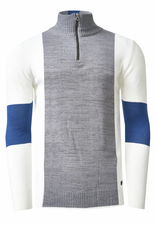 Specificaties: Fijn gebreide trui in colorblock-stijl met opstaande kraag
