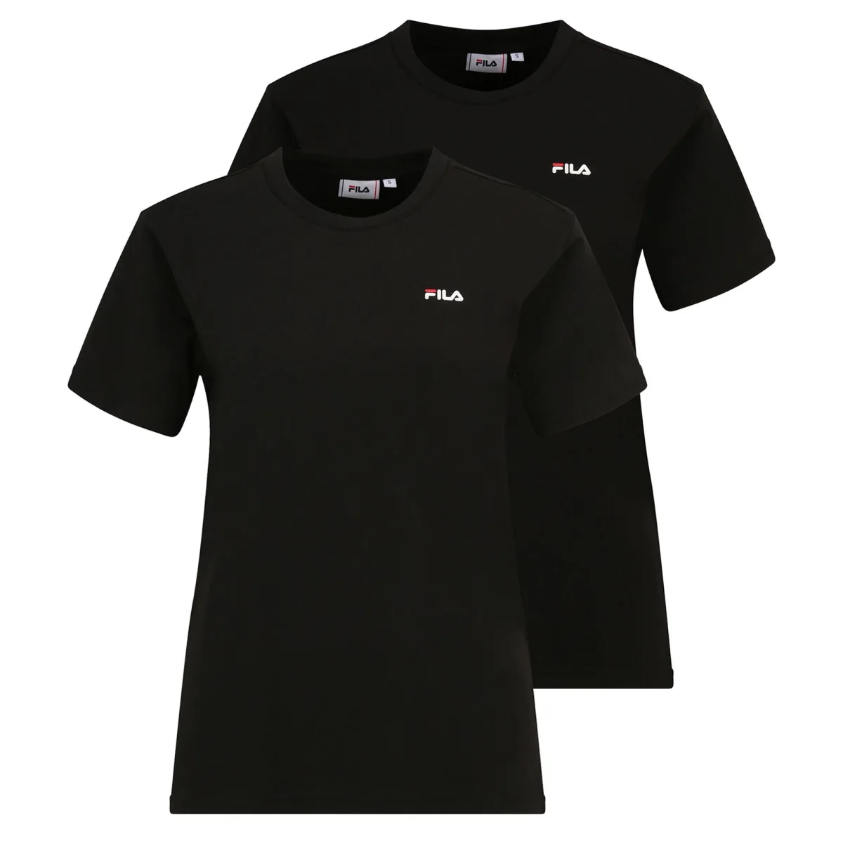 Twee T-shirts voor vrouwen van het merk FILA. Korte mouwen, ronde hals en kleine logo-opdruk, gemaakt van 100% katoen, regular fit.