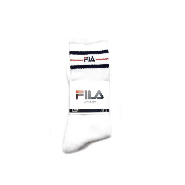 Fila Tricolor damessokken van wit katoen. Originele Fila merkkleding – Fila streetwear/sportswear design – Fila damesmode, perfect voor dagelijks gebruik – deze witte Fila sokken passen perfect bij de rest van je garderobe – comfortabel katoen – klassiek – driekleurig design.