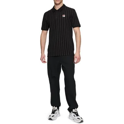 FILA Linter Striped Polo Shirt Black/iron Gate Striped