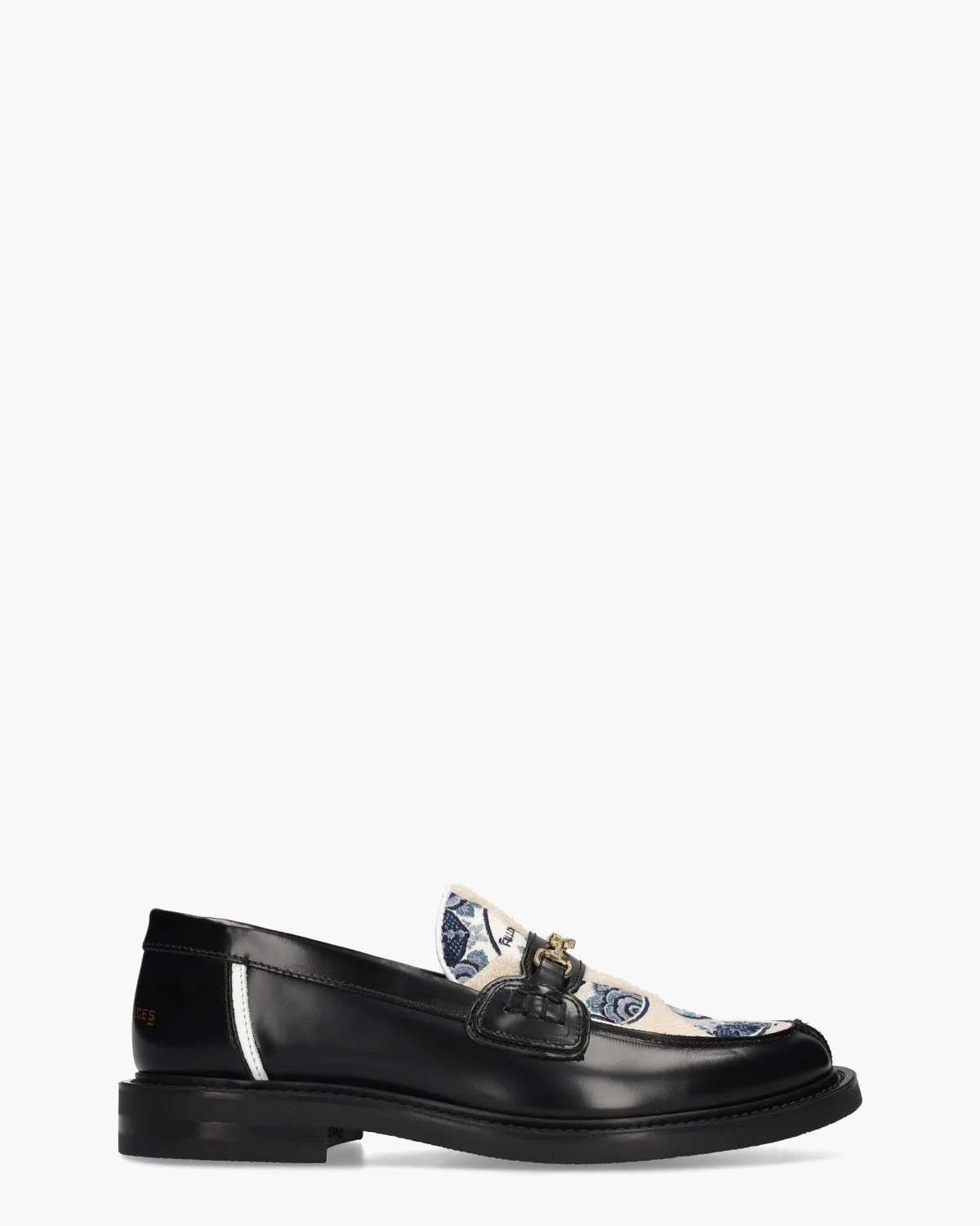 Een verfijnd eerbetoon aan het Amsterdamse stadsbeeld. De Loafer Broken Plate herenloafer vormt een artistiek statement. De polyester patch op deze loafer is voorzien van custom artwork, geïnspireerd op de bekende Nederlandse stijl van Delfts Blauw, met gedetailleerde illustraties van de Amsterdamse grachten die samenkomen in een