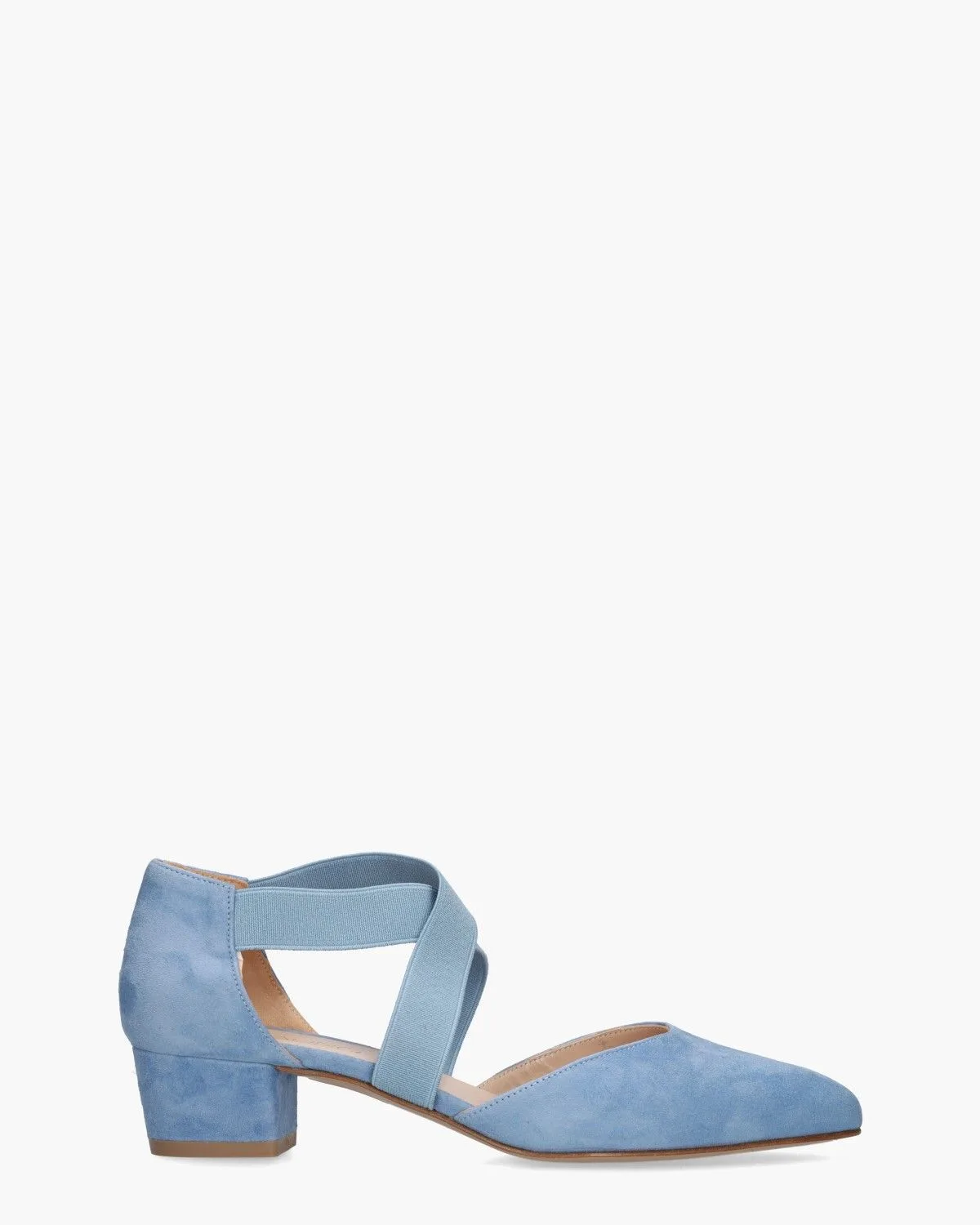 De Di Lauro Dalia pump voor dames valt direct op door het lichtblauwe suède en de slanke belijning. Het bovenwerk van soepel suède geeft het model een zachte, luxe look. De elastische banden over de wreef creëren niet alleen een stijlvol detail, maar zorgen ook voor een mooie aansluiting rond de voet. De leren voering voelt