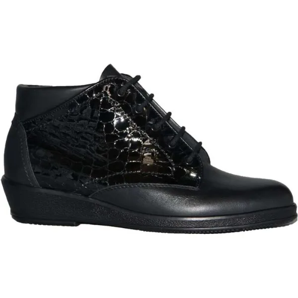 Half hoge boot van het Topmerk Finn-Comfort. een mooie combinatie van nappa leer en lak. een uniek uitneembaar voetbed en een warme wollen voering