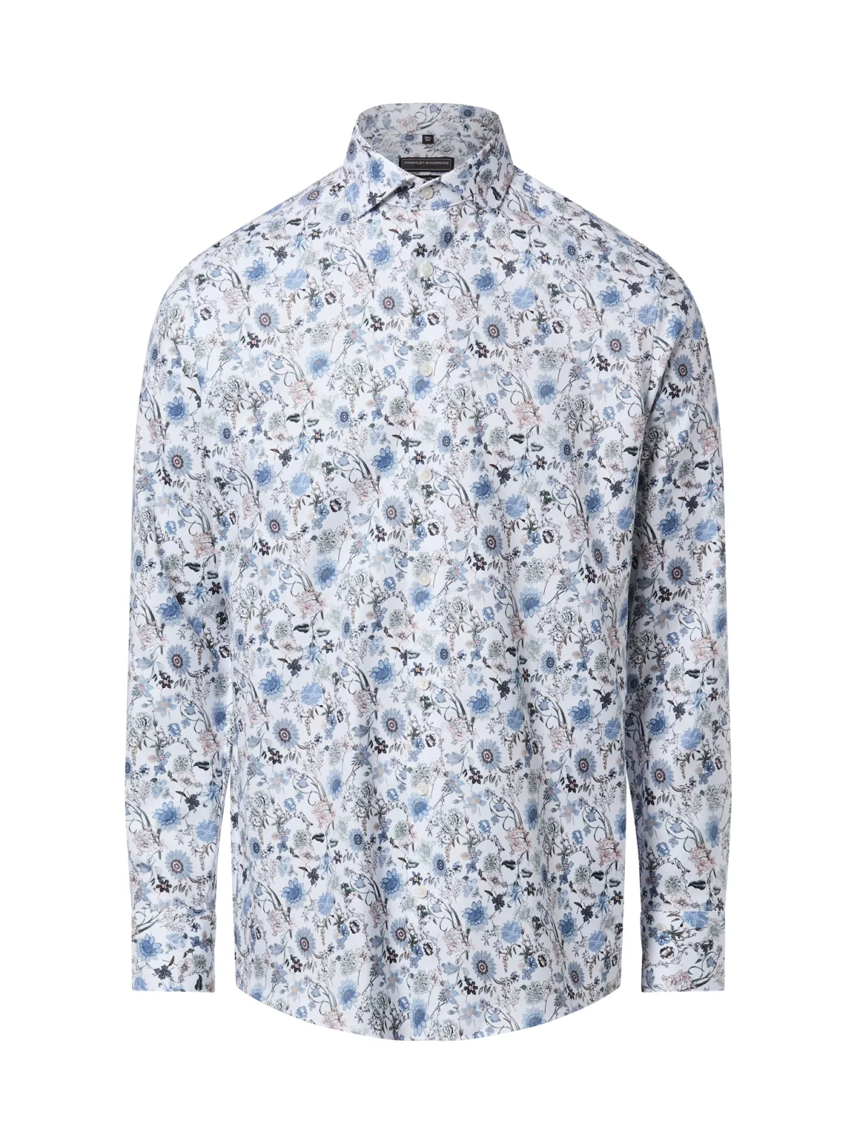 Design: Knop placket, Ronde zoom; Type sluiting: Knoopsluiting; Materiaal: Katoen; Motief: Bloemenprint; Kraag: Cut-away boord; Extra's: All-over patroon; Pasvorm: Regular fit; Armlengte: Lange mouw