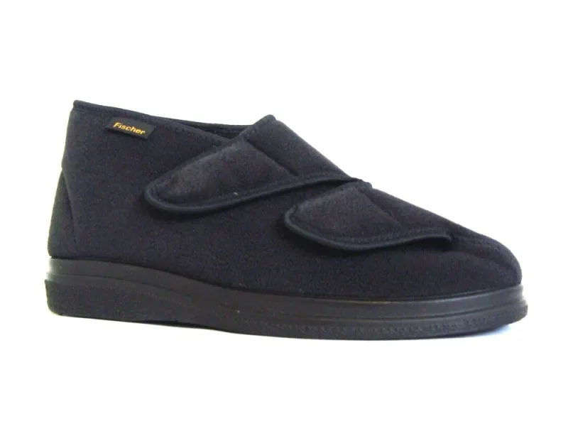 Extra brede pantoffels van het merk Fischer. Dit model heeft een klittenbandsluiting. Deze pantoffels van Fischer, artikelnummer 13997