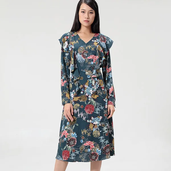 Deze prachtige fit-and-flare-jurk presenteert een verleidelijke V-klare, lange mouwen en ruches die van schouders naar de taille lopen. Zeer vleiende snit, dit item benadrukt elk silhouet. Met een prachtige bloemenprint, een Dash-hippie-retro, is dit item geschikt voor verschillende gelegenheden. Het brengt een echte voorsprong op je garderobe en heeft de veelzijdigheid om je van dag tot nacht met lichtheid en elegantie te brengen. Productdetails: Formulier: fit-and-flare Stoffenriem inbegrepen Lengte: 115 cm Lange mouwen V halslijn Zip Center terug Het model meet 1m73 en heeft een maat 36