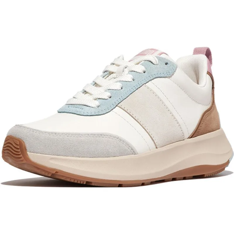 Dit F-Mode Flow herontwerp geeft onze best verkopende sportschoenen met dikke zolen een vintage runner vibe uit de jaren 70/80. Met hetzelfde comfort en dezelfde lichtheid als de originelen (dankzij onze Microwobbleboard™-tussenzolen die de hele dag demping bieden), hebben deze een iets slankere vorm, overlappende panelen voor speelse kleur/materiaal-mixen en een rubberen buitenzool om de hiel. Hier in leer en suède, een combinatie van crème met leuke kleuraccenten. Zacht gevoerd. Trek deze schoenen aan voor een athleisure look.