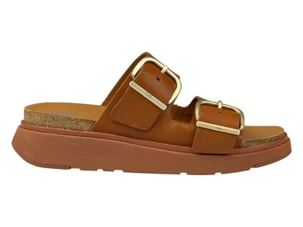 Fitflop Slipper Gen-FF Buckle Two-Bar Leather Slides Light Tan