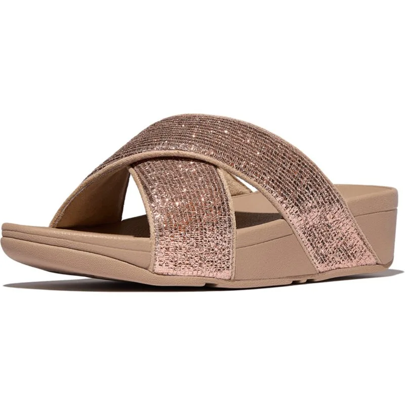 FitFlop FitFlop Lulu CrinkledShimmer Cross Slides BEIGE