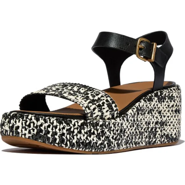 FitFlop Damen Sandalen Platfforms Woven Wedge AnkleStrap Sandals JG1 BlackIvory...