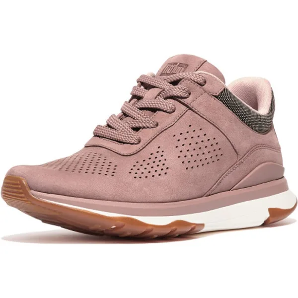 Met deze Vitamin, een slanke ultralichte sportsneaker, beweegt u meer en voelt u zich geweldig. Ontworpen voor sporten en casual hardlopen, maar net zo goed geschikt om uw dagelijkse activiteiten op te voeren - van snelwandelen naar het werk of fietsen door de stad. Hier in geperforeerd luxe nubuck dat zacht, licht, smart-casual en ideaal is als het warm is. Met een gewatteerde kraag en aparte tong voor gemakkelijk aan- en uittrekken. Op FitFlop's verende, voorwaarts stuwende Neodynamic tussenzool. Flexibel en toch stabiel. Ondersteunend. Het is bewegingsmotiverende magie.