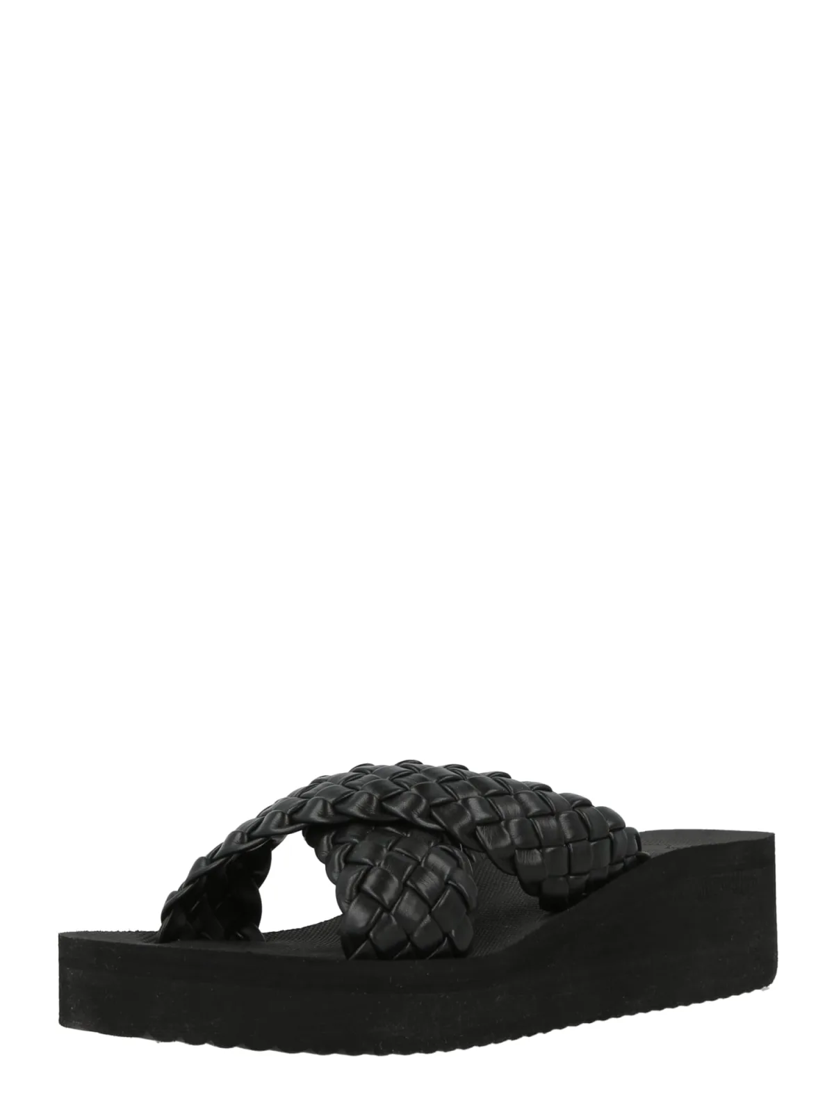Design: Gevoerd, Profielzolen; Type sluiting: Slip; Type hak: Sleehak; Materiaal: Imitatieleder; Motief: Effen; Plateau: Met plateau; Materiaal: Imitatieleer; Schoenneus: Open toe; Extra's: Gevlochten structuur, Flexibele zool; Hakhoogte: Middelhoge hak (3-7 cm)