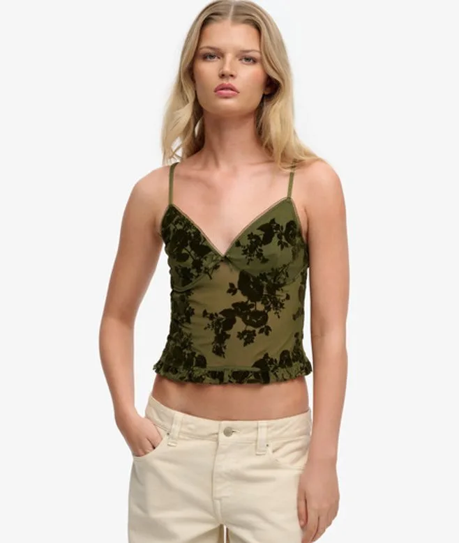 - De laagste prijs van Flocked Mesh Cami Top Green werd gevonden op 24 april 2026 08:54.