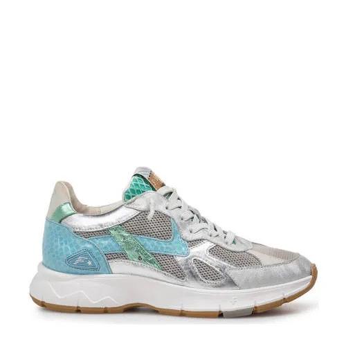 Floris van Bommel Daysi 05.04 leren sneakers zilver/turquoise