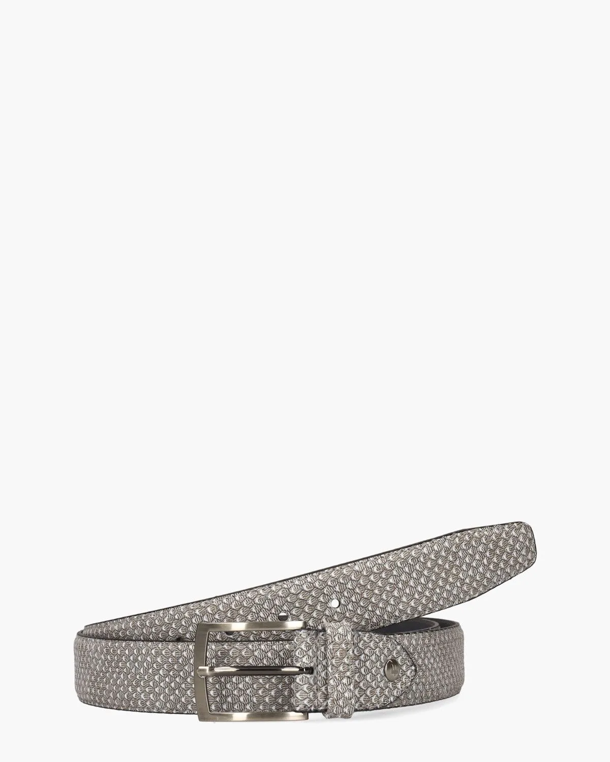 Deze De Belter 42.68/CFM-10092-20-03 herenriem van Floris Van Bommel combineert perfect met verschillende outfits. Het gebroken witte en taupekleurige printleer geeft de riem een moderne uitstraling. De binnenkant is in donkergrijs leer uitgevoerd. Met een breedte van 3,5 cm is deze riem veelzijdig en comfortabel in gebruik. De zilveren