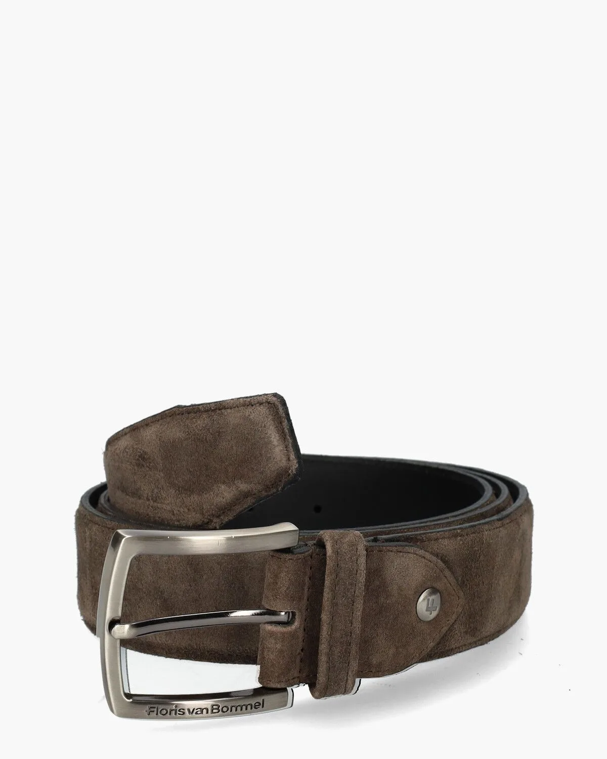 Stijlvolle riem De Belter 50.98/CFM-10056-34-01 voor heren uit de collectie van het Nederlandse merk Floris Van Bommel. Deze riem is uitgevoerd in donkerbruin licht opgeruwd suède. De binnenkant is van zwart glad leer gemaakt. De riem is 4 cm breed. Een zilveren gesp en een subtiele metalen FVB-button maken de ceintuur af. Kleur: