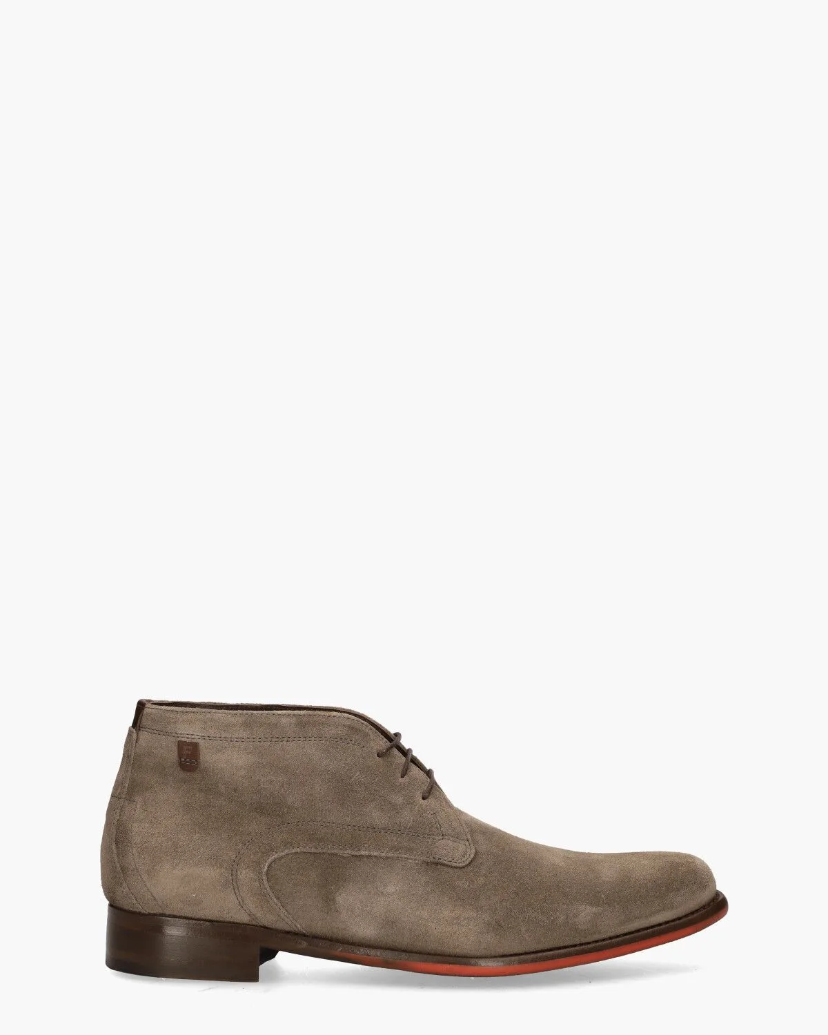 Veterschoenen voor heren De Draver 01.01/SFM-50148-34-01 van het merk Floris Van Bommel. Deze halfhoge schoen is gemaakt van taupekleurig suède, afgewerkt met sierstiksels. De kalfsleren binnenkant heeft geen uitneembaar voetbed maar is wel onder de gehele voet voorzien van een comfortabel foamlaagje. De oranje bewerking in de zool geeft de