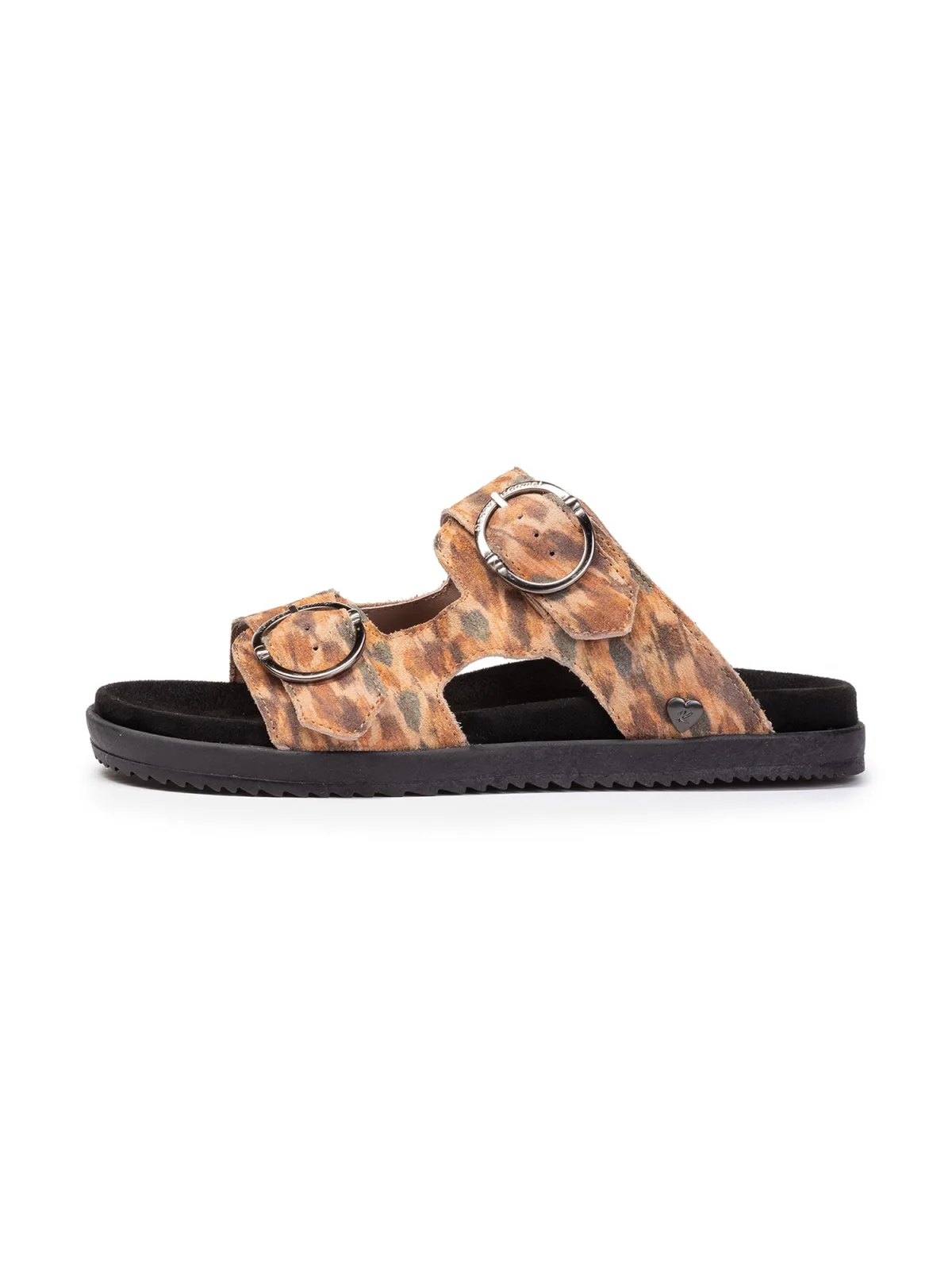 Design: Gevoerd; Type sluiting: Gesp; Materiaal: Leer; Materiaal: Suède; Schoenneus: Open toe; Extra's: Flexibele zool; Hakhoogte: Platte hak (0-3 cm)