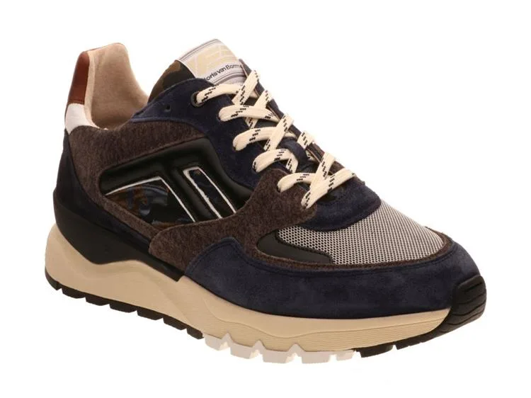 Floris van Bommel Sneakers laag marine donkerblauw bruin zwart wit