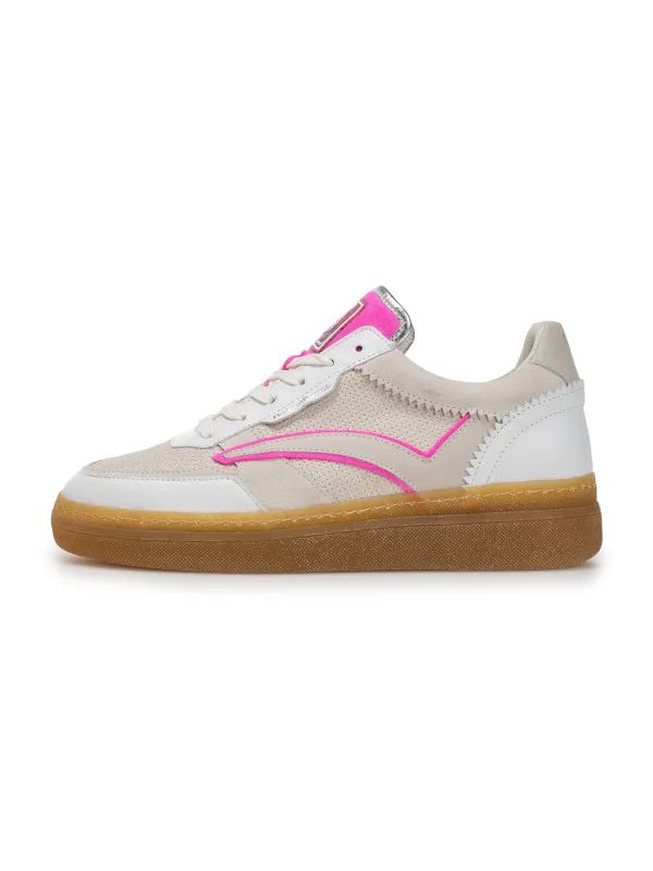 Floris van Bommel Sneakers laag ‘Fygi 01’ beige / neonroze / wit