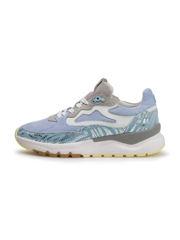 Floris van Bommel Sneakers laag ‘Treni 01’ lichtblauw / greige / zilver / wit
