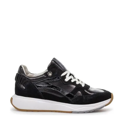 De Floris van Bommel Suvi sneaker is een moderne damessneaker met een sportieve, rustige uitstraling in zwarte tinten. De lichtgewicht zool voelt soepel aan bij elke stap en geeft een prettig, verend loopgevoel. Door de combinatie van zacht suède en meerkleurige details krijgt de schoen een subtiele, speelse look die bij veel outfits past.Lichte zool en comfortabel voetbed Lichtgewicht platte zool die soepel meebeweegt tijdens het lopen Bovenkant van zacht suède met zwarte en meerkleurige accenten Uitneembaar, dik voetbed dat ruimte biedt voor een eigen inlegzool of steunzool Voering van stevig, maar soepel zwart leer voor een aangename pasvorm rond de voet Normale leest die geschikt is voor de gemiddelde voetbreedte Vetersluiting waarmee de schoen makkelijk strakker of losser gemaakt kan worden Retro FvB logo’s op tong en hiel voor een herkenbare merkuitstralingElke dag dragen met gemakDeze Suvi 04.00 sneaker past goed bij dagelijkse outfits, van een jeans tot een casual jurk. Door de platte zool en de leren voering voelt de schoen prettig aan tijdens langere dagen. Het uitneembare voetbed maakt het model geschikt voor wie eigen zooltjes wil gebruiken zonder in te leveren op ruimte of comfort.Floris van Bommel kwaliteitFloris van Bommel staat bekend om vakmanschap en aandacht voor detail. De combinatie van zorgvuldig gekozen materialen en een doordacht ontwerp zorgt voor een damessneaker die is gemaakt voor veelvuldig gebruik, met een afwerking die langdurig mooi blijft.Een stijlvolle, lichte sneaker die je dagelijkse look moeiteloos compleet maakt.
