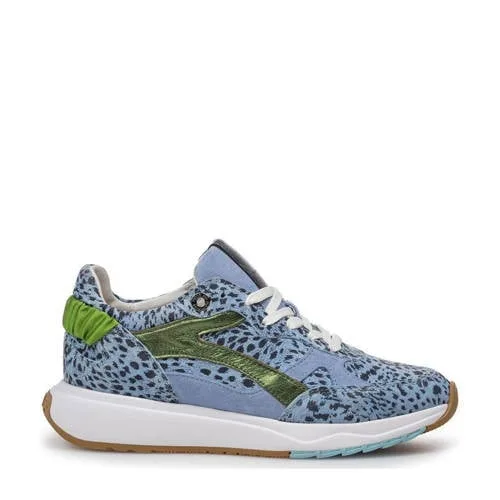 De Floris van Bommel Suvi sneaker combineert een speelse panterprint met frisse kleuren voor een moderne, vrouwelijke look. Het bovenwerk van suède heeft een fijne panterprint en wordt stijlvol onderbroken door effen lichtblauw suède en limekleurige metallic accenten. Retro FvB logo’s op tong en hiel geven de schoen een herkenbare, sportieve uitstraling. De soepele, lichtgewicht zool en het dikkere voetbed zorgen samen voor aangename ondersteuning tijdens lange dagen.Kleurrijk design met dagelijks comfort Suède bovenwerk met fijne panterprint en effen lichtblauwe details Limekleurige metallic accenten voor een frisse, opvallende touch Soepele, lichtgewicht zool voor een licht gevoel bij elke stap Dik, comfortabel voetbed, uitneembaar voor een eigen inlegzool of steunzool Voering van soepel maar stevig zwart leer voor een prettig draaggevoel Normale leest met vetersluiting en platte zool voor een stabiele pasvormVeelzijdige sneaker voor elke dagDeze Suvi 04.02 sneaker past goed bij dagelijks gebruik, bijvoorbeeld naar werk, stad of een ontspannen weekenddag. De platte zool en normale leest maken het eenvoudig om de schoen de hele dag door te dragen, terwijl de meerkleurige print en frisse accenten verschillende outfits een eigentijdse uitstraling geven.Floris van Bommel als vertrouwde keuzeFloris van Bommel staat bekend om zorg voor pasvorm, materiaal en afwerking. Deze sneaker laat dat zien door het gebruik van stevig leer voor de voering, een zorgvuldig ontworpen leest en een zool die licht aanvoelt, zodat stijl en draaggemak goed in balans zijn.Een karaktervolle sneaker die comfort en kleur samenbrengt voor alledaags gebruik.