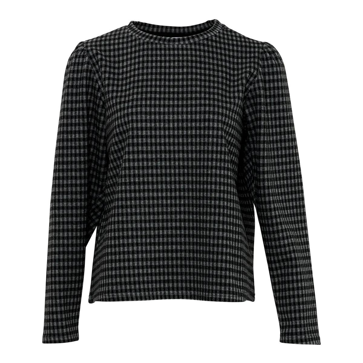 Een relaxte en stijlvolle geruite set met een tijdloze look. De top heeft een ronde halslijn en lange mouwen met een licht losse pasvorm voor dagelijks comfort. De bijpassende broek heeft een recht silhouet en steekzakken aan de zijkant, wat zorgt voor een harmonieuze maar toch comfortabele outfit. Perfect voor casual dagen waarop je er verzorgd uit wilt zien, maar toch comfortabel wilt blijven.