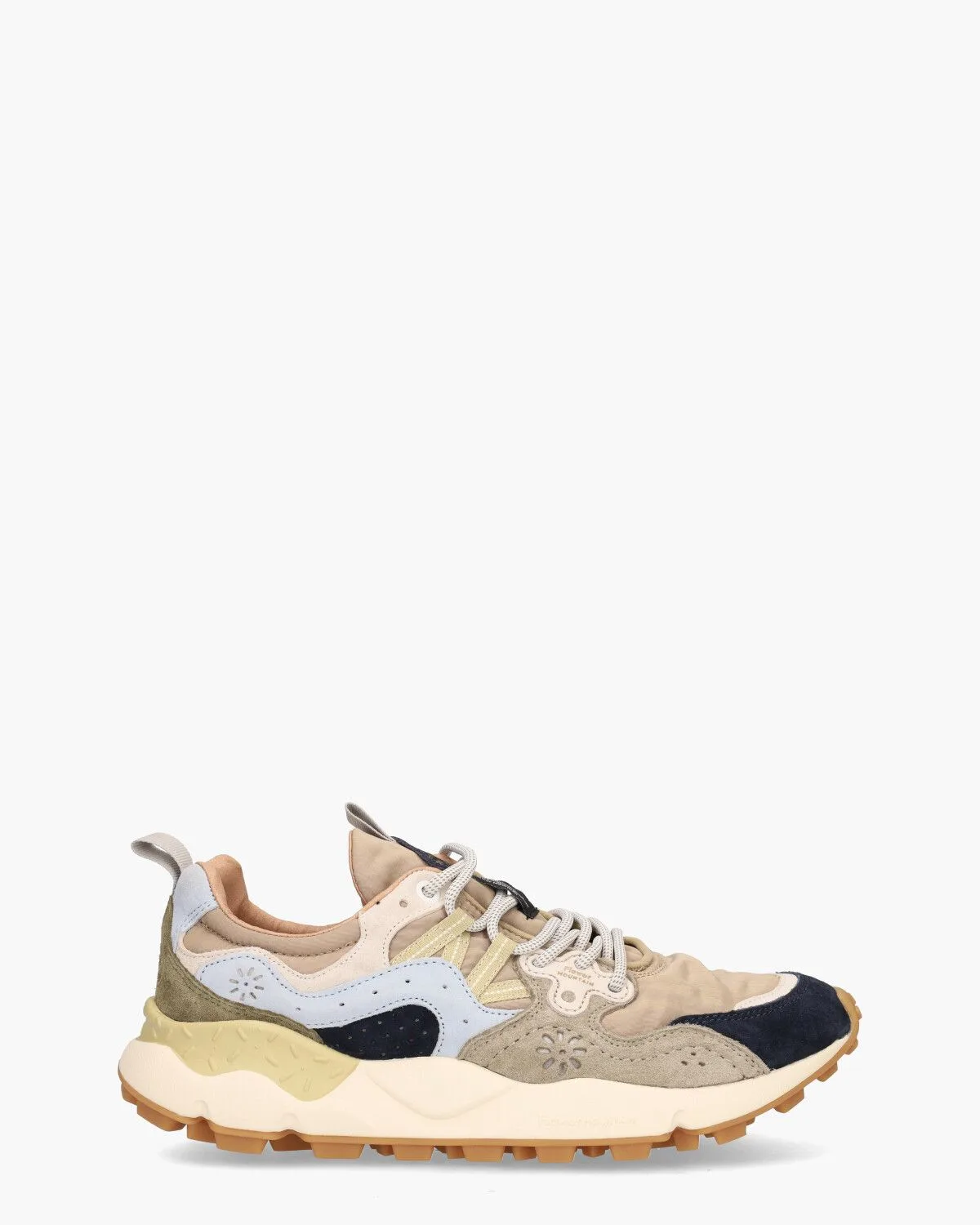 Geïnspireerd door het buitenleven, combineert de Yamano 3 herensneaker sportieve eigenschappen met een stoere uitstraling, perfect geschikt voor zowel de stadsjungle als avonturen daarbuiten. Het taupekleurige bovenwerk van technische stof wordt verfraaid met multicolor suède details, kenmerkend door de overlappende constructie met