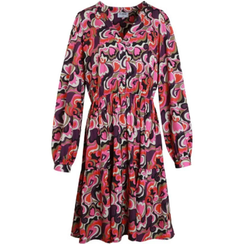 De Biby 24VHF20 jurk van FLURESK is een jurk met een midi-model met volant, knoopsluiting en lange mouwen. Deze jurk is uitgevoerd in een lovable print in de kleur multi.De stof is gemaakt van polyester.