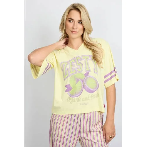 Frisse kleuren en een relaxed silhouet komen samen in dit katoenen dames T-shirt van FLURESK. Het Yanelis T-shirt heeft een rechtvallende pasvorm die soepel langs je lichaam valt en daardoor geschikt is voor het dagelijks leven. De combinatie van lichtgeel met paarse accenten en een printopdruk zorgt voor een speelse uitstraling, ideaal voor lentedagen waarop je iets luchtigs wilt dragen.Details die het elke dag makkelijk maken Gemaakt van 100% katoen, een ademend materiaal dat zacht aanvoelt op de huid Lichtgele kleur met paarse details en printopdruk voor een frisse uitstraling Rechtvallende pasvorm die niet strak om het lichaam zit Korte mouwen met rechte inzet, comfortabel en gemakkelijk te stylen Ronde hals die mooi aansluit zonder te hoog te zitten Geschikt als los item, niet onderdeel van een co-ord setLuchtig shirt voor elke dagHet Yanelis T-shirt komt uit de Daily collectie en is ontworpen voor alledaags gebruik. Draag het op je favoriete jeans, een comfortabele broek of een korte broek in de lente. De lichte kleur en het zachte katoen maken het een praktische keuze voor zowel thuis als voor een casual dag buiten.FLURESK: eigentijdse dagelijkse favorietenFLURESK richt zich op moderne kledingstukken die makkelijk te dragen zijn en goed passen in een alledaagse garderobe. De ontwerpen combineren actuele kleuren en prints met toegankelijke pasvormen, zodat je snel een outfit samenstelt die bij jouw stijl past.Een helder T-shirt dat extra kleur aan je garderobe toevoegt.