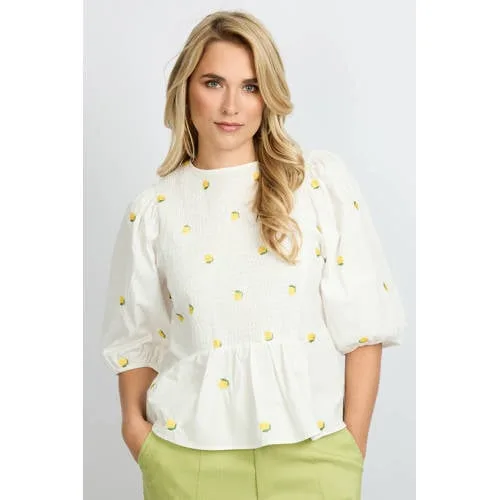 De Salsita top van FLURESK is een luchtige, vrouwelijke keuze voor elke dag. Deze katoenen dames top met pofmouwen combineert een zachte ecru basis met een gele all over print, waardoor je outfit meteen een frisse voorjaarsuitstraling krijgt. Het rechtvallende model en de soepele stof zorgen voor een ontspannen silhouet dat prettig om je lichaam valt.Verfijnde details voor alledaags gemak Gemaakt van 100% katoen, voelt zacht aan op de huid en is prettig om de hele dag te dragen Ecru/geel kleurcombinatie met all over print voor een speelse, maar rustige look Driekwart pofmouwen geven extra volume en een modern accent Ronde hals die mooi aansluit zonder strak te zitten Rechtvallende pasvorm die niet tekent en makkelijk te stylen is Geen sluiting, waardoor je de top eenvoudig aantrekt Smockwerk als subtiel detail dat de top net wat bijzonderder maaktIdeaal voor jouw daily outfitsDeze top uit de Daily collectie past goed bij je doordeweekse garderobe. Combineer met een jeans of een wijde broek voor een ontspannen daglook, of met een nette pantalon voor een meer geklede outfit. Door de driekwartmouwen is de top perfect voor het voorjaar en voor laagjes op koelere dagen.FLURESK: moderne stijl met een frisse twistFLURESK ontwerpt damesmode met een eigentijdse uitstraling, waarin kleur en prints een belangrijke rol spelen. De collecties zijn gemaakt om makkelijk te combineren, zodat je met een paar items steeds nieuwe looks creëert. Met FLURESK kies je voor kleding die zowel stijlvol als comfortabel is in het dagelijks leven.Een toegankelijke top die je garderobe direct een frisse update geeft.