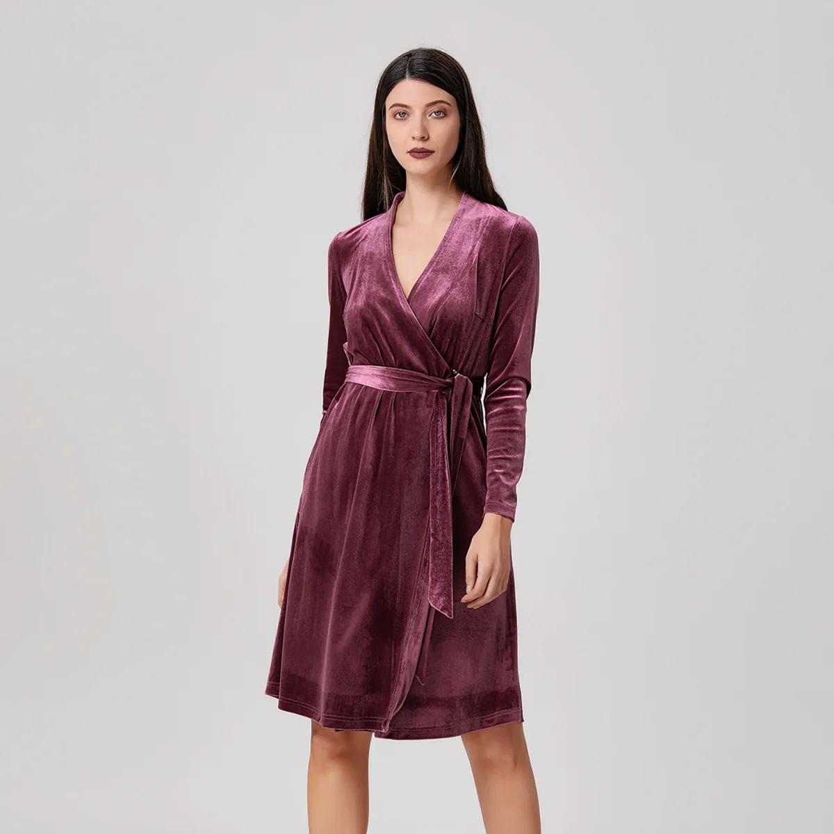 Specificaties: Fluwelen wikkeljurk met V-hals