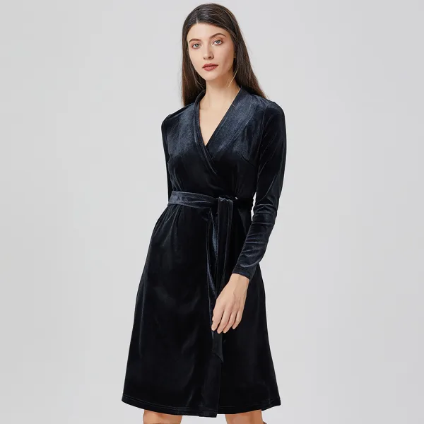 Fluwelen wikkeljurk met V-hals Prijzen