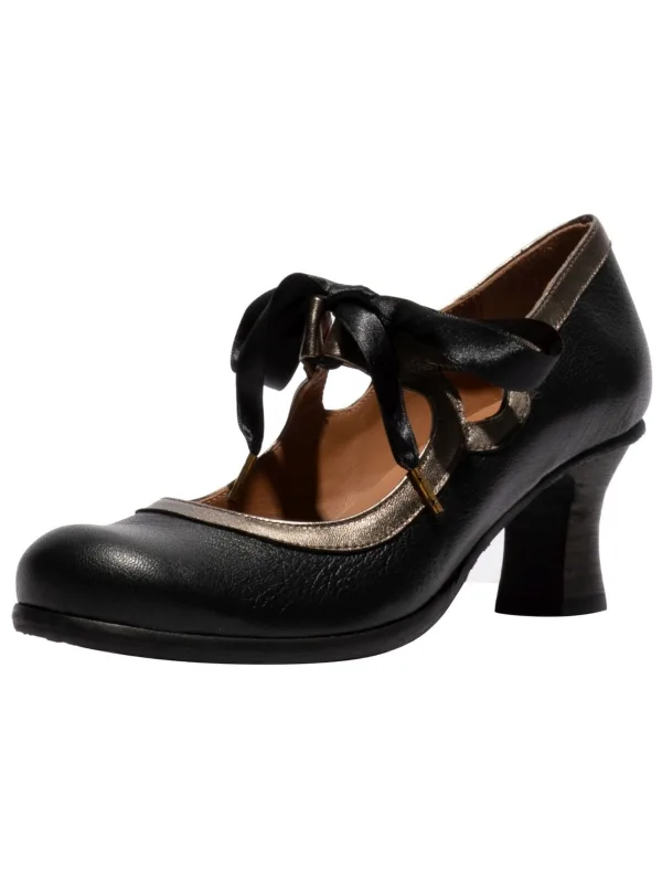 Design: Versterkte hak; Type sluiting: Velcro sluiting; Type hak: Trechterhak; Materiaal: Leer; Motief: Effen; Materiaal: Glad leer; Schoenneus: Ronde neus; Extra's: Vintage; Hakhoogte: Middelhoge hak (3-7 cm)