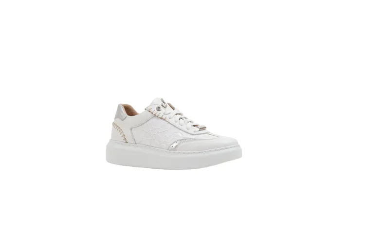 Claire 21.003-1021 – Calf Offwhite Combi (Wijdte H)Stijlvolle elegantie ontmoet ultieme ruimte. De perfecte sneaker voor de modebewuste vrouw die geen concessies doet aan comfort.De Claire 21.003-1021 is niet zomaar een sneaker; het is een sieraad voor je voeten. Uitgevoerd in prachtig offwhite kalfsleer en verrijkt met romantische kant-details en zilveren accenten, brengt dit model een frisse, vrouwelijke touch aan elke outfit.Comfort voor de bredere voetSpeciaal ontworpen met Wijdte H, biedt deze sneaker extra volume bij de voorvoet en wreef. Geen knellende tenen meer, maar de ruimte die je nodig hebt, gehuld in een elegant jasje. De dikke platformzool ziet er niet alleen trendy uit, maar zorgt ook voor een uitstekende demping bij elke stap.De unieke details:Luxe Materiaalmix: Hoogwaardig offwhite leer gecombineerd met een verfijnd kanten inzetstuk aan de zijkant voor een romantische uitstraling.Zilveren Accenten: De metallic hielkap en details bij de veters geven de schoen een moderne, luxe finish.Ambachtelijke Afwerking: Let op de grove stikdetails langs de hiel en zoolrand, wat de sneaker een uniek, handgemaakt karakter geeft.Wijdte H: Extra breedte voor een zorgeloze pasvorm de hele dag door.Specificaties:Model: Claire 21.003-1021Kleur: Calf Offwhite Combi (Wit/Zilver)Wijdte: H (Extra breed)Materiaal: Kalfsleer & Textiel (Kant)Zool: Lichtgewicht plateauzoolGeef je voeten de ruimte en stijl die ze verdienen. Bestel de Claire 'Offwhite Combi' vandaag nog!