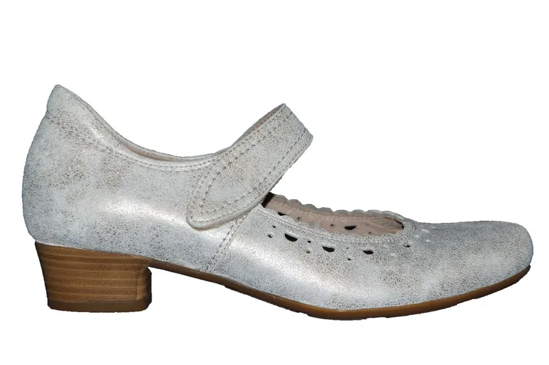 Elegante bandschoen van Footnotes in een beige zilver kleur. geheel van leer, een goede steun en een stevige hiel omsluiting