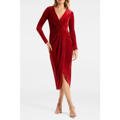 Forever New Antionette Wrap Velvet Midi Dress Red