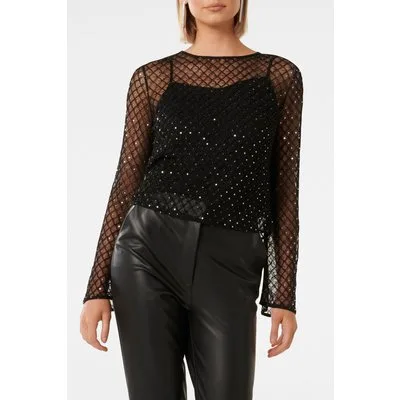 Forever New Beatrix Sheer Beaded Top Black