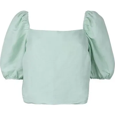 Forever New Jessica Lace Up Square Neck Linen Top Green